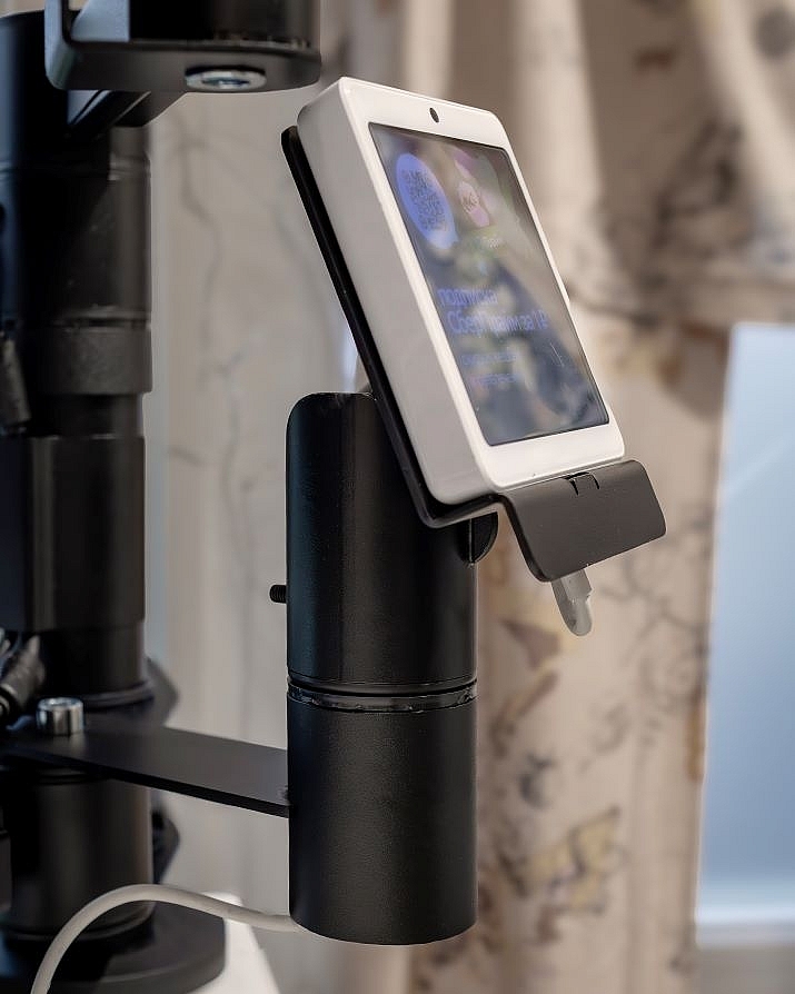 Сканер штрихкодов: Ручной сканер больше не валялся на столе. Для него использовали держатель для ручного сканера, который также был установлен на основную стойку. Сканер всегда под рукой, в одном и том же месте, и его легко взять и положить.