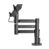 Многоколенчатый универсальный держатель банковского терминала УД-4, который позволяет отводить терминал на расстояние от кассового узла. Такой держатель часто используется в окнах выдачи заказов, где покупатели могут оплатить заказ, не находясь непосредственно у кассы. Конструкция универсального держателя обеспечивает удобный доступ к терминалу для покупателей и кассиров. Держатель УД-4 имеют три подвижных соединения между секциями и возможности поворота вокруг оси стойки, что позволяет легко перенаправлять терминал в нужное место.