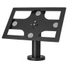 Внутренняя часть держателя для Samsung Galaxy SM-Т505 сделана в соответствии с заводскими размерами, поэтому планшет в подставке держится крепко и без люфта. Монтаж к поверхности стола осуществляется тремя винтами М6 (входят в комплект поставки) или саморезами. Провод от зарядного устройства можно протянуть под столешницу или вывести через пластиковую проставку с каналом для кабеля. Не менее важной функцией держателя можно считать его способность противостоять воровству оборудования. Вытащить планшет быстро и незаметно не получится, он практически полностью закрыт металлическим корпусом держателя.